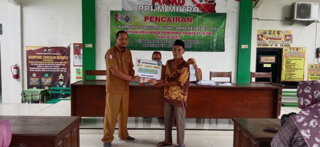 Senin, 26 Desember 2022, jam 10.00 s.d 12.00 WIB, bertempat di Balai Desa Dander dilaksanakan agenda pencairan Bantuan Langsung Tunai Dana Desa (BLT-DD).