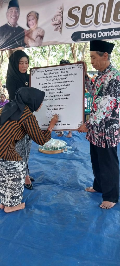 Bertepatan dengan kegiatan tahunan sedekah bumi Dusun Dander, Jum’at Pahing, 30 Juni 2023 yang bertempat di sumber mata air Dusun Dander (Tirta Wana Dander), Ketua TP PKK Desa Dander, Hj. Rusmiati mencanangkan Hari Batik Bedander. Pencanangan Hari Batik Bedander ini merupakan sebagai upaya untuk melestarikan budaya lokal Desa Dander agar tetap lestari dan tidak lekang oleh zaman. Kegiatan pencanangan Hari Batik Bedander ini dihadiri oleh Kepala Desa, Perangkat Desa, anggota BPD, Ketua RT/RW se-Desa Dander, tokoh masyarakat, tokoh agama dan masyarakat Desa Dander.
