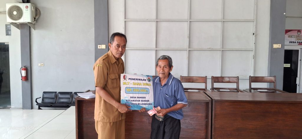 Bertempat di Balai Desa Dander, Selasa 5 Agustus 2025, jam 09.00 WIB diselenggarakan kegiatan pencairan Bantuan Langsung Tunai Dana Desa (BLT-DD). Pencairan bantuan bagi keluarga kurang mampu dan untuk mengentaskan kemiskinan ekstrem ini bersumber dari dana APBN (Dana Desa) yang berjumlah 10 KK Keluarga Penerima Manfaat (KPM) dari beberapa RT yang ada di Desa Dander. Untuk diketahui pencairan BLT DD ini untuk bulan Juli 2025 dengan besaran bantuan per bulan Rp.300.000, per KPM. Harapannya dengan bantuan ini dapat membantu meringankan beban kebutuhan sehari-hari penerima bantuan tersebut. Bantuan BLT DD tersebut diserahkan secara simbolik kepada perwakilan KPM oleh Kepala Desa Dander atau perangkat desa yang mewakili.