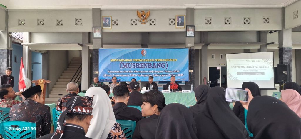 Bertempat di pendopo Kecamatan Dander, Kamis, 5 Februari 2026, Pemerintah Desa Dander mengikuti kegiatan Musyawarah Perencanaan Pembangunan Kecamatan (Musrenbangcam) Dander untuk penyusunan Rencana Kerja Pemerintah Daerah (RKPD) Tahun 2027. Kegiatan musrenbangcam ini menghadirkan narasumber dari angggota DPRD Kabupaten Bojonegoro, Sekretaris Bappeda Bojonegoro, Kapolsek, Danramil, Camat Dander serta perwakilan dari Organisasi Perangkat Daerah (OPD) terkait.